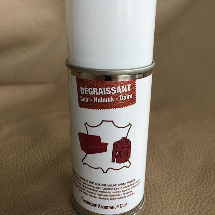 Lorsque vous avez une zone localisée grasse, il est possible d’utiliser ce dégraissant en bombe qui se présente sous forme de poudre à laisser agir plusieurs heures avant d’aspirer cette poudre. Il peut être nécessaire de renouveler l’opération en fonction de l’état du Cuir (nous utilisons ce produit dans le cadre de la rénovation des cuir de volant)